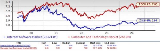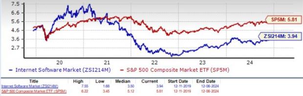 On the basis of trailing 12-month price-to-sales (P/S), which is a commonly used multiple for valuing Internet Software stocks, we see that the industry is currently trading at 3.94X compared with the S&P 500’s 5.81X and the sector’s trailing 12-month P/S of 7.17X.